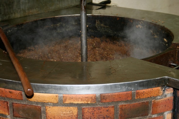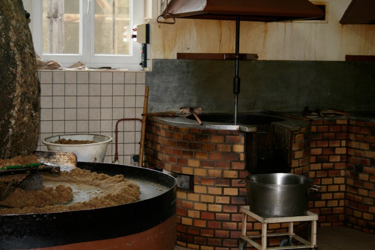 La cuisson se fait, après broyage ; on fait chauffer dans un « poêle » en surveillant la température (60 à 70 °C) plus on chauffe, plus l’huile a de goût. On juge aussi à l’odeur et à la couleur…mais elle ne doit pas brûler !