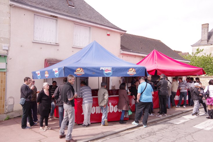 • de l’autre côté de la route, il y avait trois marchands d’anguillettes.