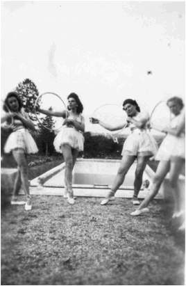 De gauche à droite : Jacqueline Rabeau, Madeleine Berger, Jacqueline Jeudy, Mlle Riff, Denise Lebeau, Liliane Aldeghi